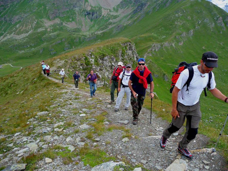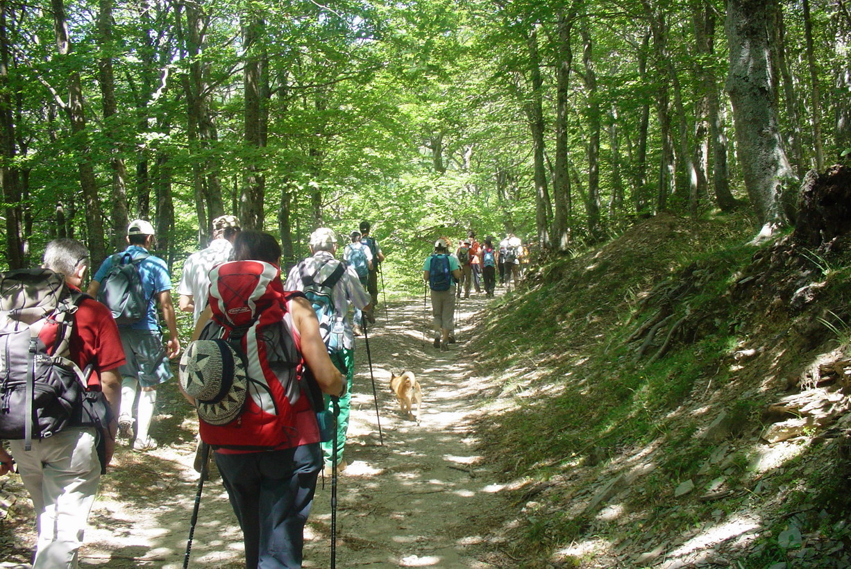 il gruppo dei pellegrini escursionisti sul sentiero che conduce a Serra